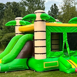 This tropical themed bounce house with attached slide will transport your guests to a sun-soaked paradise, ensuring hours of non-stop fun. Perfect for all kinds of gatherings, this vibrant inflatable combines exhilarating bounce action with an exciting slide experience.